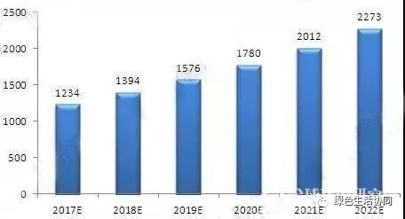 根據(jù)規(guī)劃的相關目標和標準,預計我國垃圾焚燒爐以年均復合增長率17.23%的速度增長,到2022年我國垃圾焚燒爐將達到2273臺,是當前焚燒爐數(shù)量的2倍之多。下圖是對中國垃圾焚燒爐行業(yè)市場規(guī)模的預測。