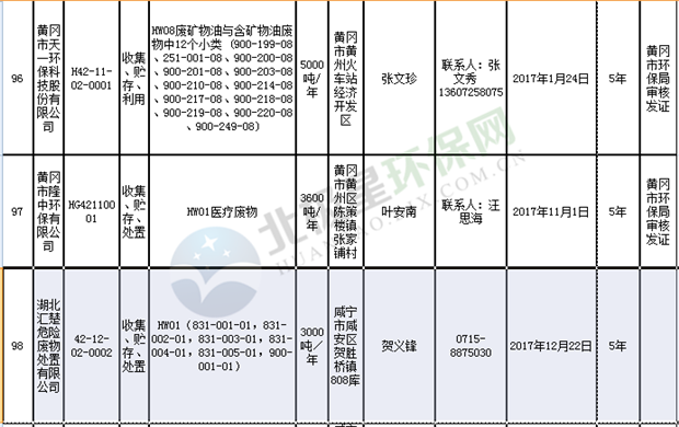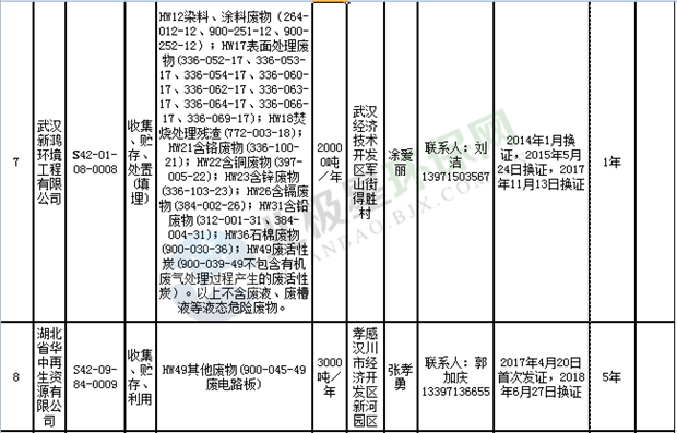 日前湖北省環(huán)保廳發(fā)布了《湖北省危險(xiǎn)廢物經(jīng)營許可證》單位名錄(截至2018年10月12日,共108家),且附有聯(lián)系電話,具體內(nèi)容如下: