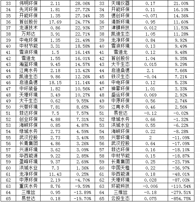 中環(huán)裝備凈利潤虧損0.13億元,居然還能位于D榜的第五,扭虧為盈的能力讓人佩服。不過凈利潤增長主要是子公司中節(jié)能六合天融環(huán)??萍加邢薰经h(huán)境監(jiān)測(cè)與大數(shù)據(jù)、大氣治理業(yè)務(wù)收入同比增長。而虧損的原因則是傳統(tǒng)脫硫脫硝業(yè)務(wù),相對(duì)毛利率較低,并且裝備制造業(yè)務(wù)板塊整體利潤同比降低。