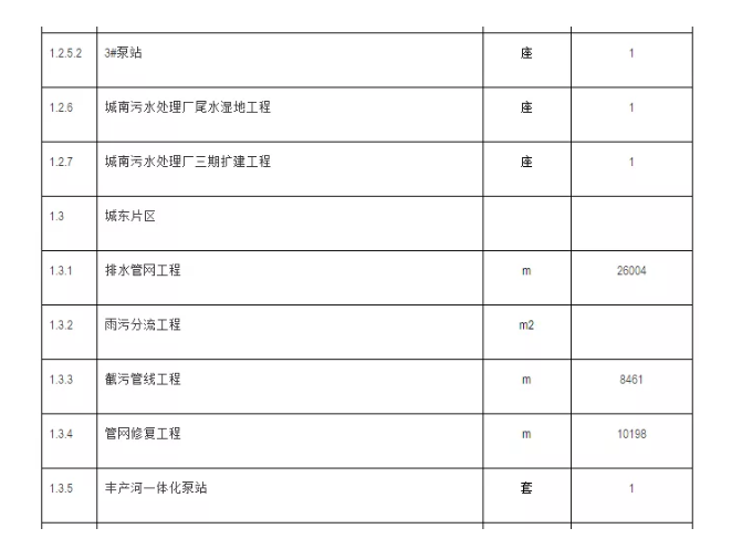 注:存量資產(chǎn)待本項(xiàng)目建成且由項(xiàng)目實(shí)施機(jī)構(gòu)完成評(píng)估后統(tǒng)一委托項(xiàng)目公司運(yùn)營(yíng),存量資產(chǎn)包括:污水管470.38km,雨污合流管道124.41km,泵站23座(以項(xiàng)目實(shí)施機(jī)構(gòu)最終確認(rèn)的清單為準(zhǔn))。