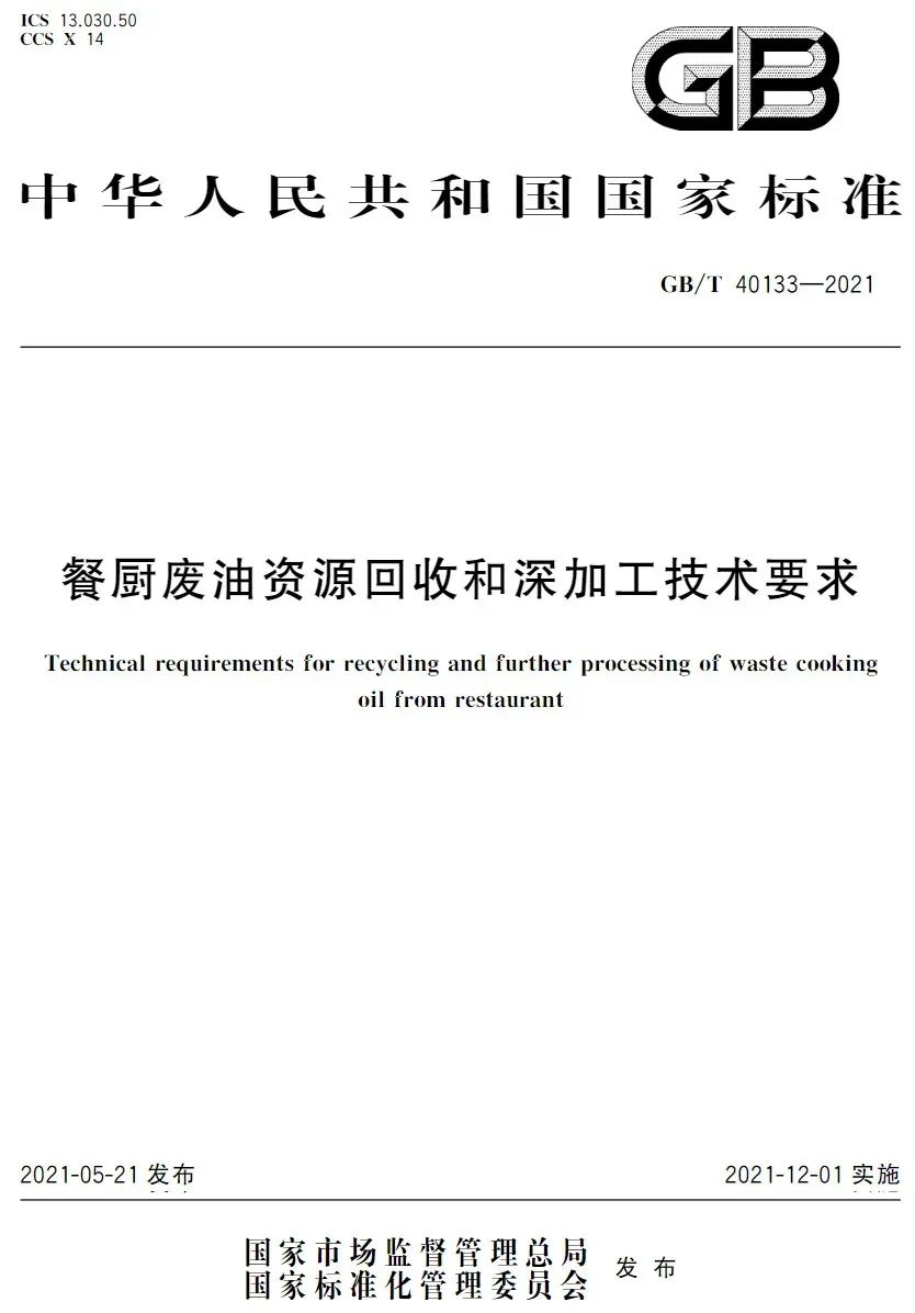 近日,由北京工商大學、深圳市朗坤環(huán)境集團股份有限公司等八家單位共同起草的GB/T 40133-2021《餐廚廢油資源回收和深加工技術(shù)要求》,于2021年5月21日經(jīng)國家市場監(jiān)督管理總局(國家標準化管理委員會)批準發(fā)布,自2021年12月1日起實施。朗坤環(huán)境集團副總裁楊友強博士、生物柴油技術(shù)總監(jiān)蘇躍華...
