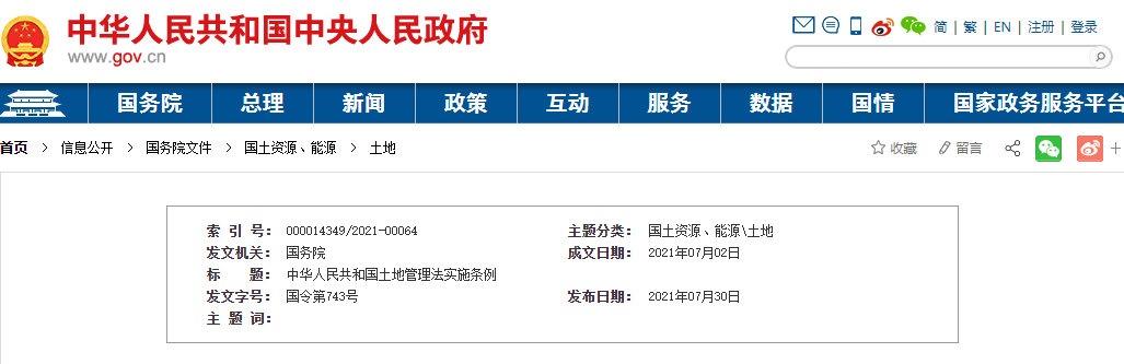 中華人民共和國國務院令第743號《中華人民共和國土地管理法實施條例》已經(jīng)2021年4月21日國務院第132次常務會議修訂通過,現(xiàn)予公布,自2021年9月1日起施行。 總理 李克強2021年7月2日中華人民共和國土地管理法實施條例(1998年12月27日中華人民共和國國務院令第256號發(fā)布 根據(jù)201...