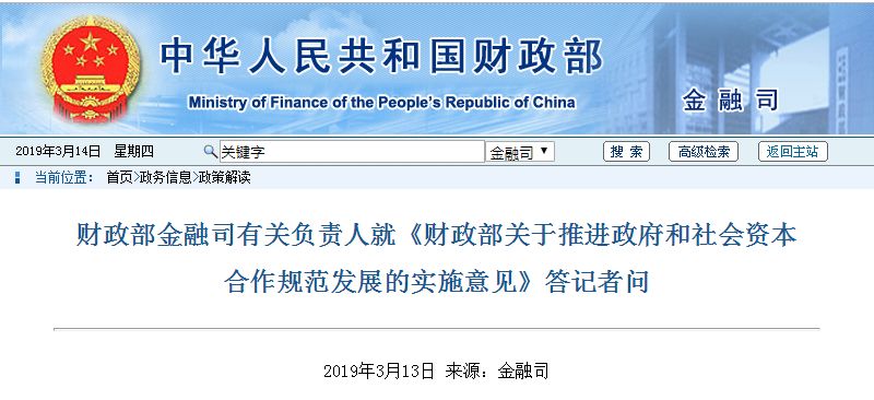 文章導(dǎo)讀近日,財政部印發(fā)《關(guān)于推進(jìn)政府和社會資本合作規(guī)范發(fā)展的實施意見》(以下簡稱《實施意見》)。財政部金融司有關(guān)負(fù)責(zé)人就《實施意見》有關(guān)情況回答了記者的提問。來源:財政部問:請介紹一下出臺《實施意見》的背景和主要目的?答:推廣政府和社會資本合作(PPP)模式,引導(dǎo)社會資本參與公共服務(wù)供給,是黨中央...