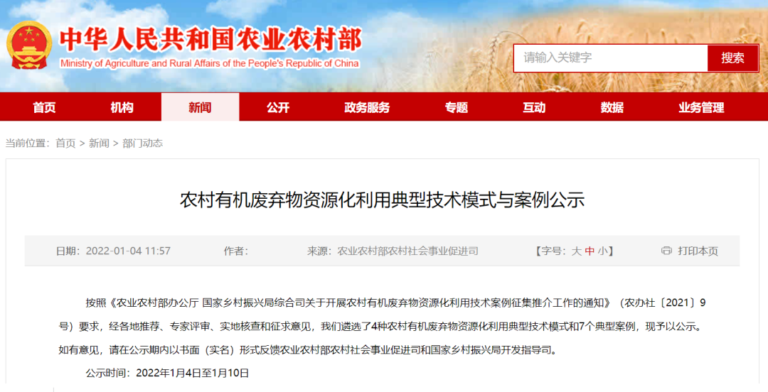 為貫徹落實(shí)《農(nóng)村人居環(huán)境整治提升五年行動(dòng)方案(2021—2025年)》部署要求,提高農(nóng)村易腐垃圾、廁所糞污等有機(jī)廢棄物無(wú)害化處理和資源化利用水平,強(qiáng)化實(shí)用技術(shù)供給,農(nóng)業(yè)農(nóng)村部、國(guó)家鄉(xiāng)村振興局在各?。▍^(qū)、市)推薦的基礎(chǔ)上,經(jīng)專家評(píng)審、實(shí)地核查,遴選了4種農(nóng)村有機(jī)廢棄物資源化利用典型技術(shù)模式和7個(gè)典型案...