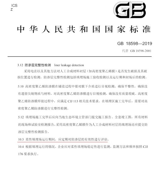 2020年6月1日《危險(xiǎn)廢物填埋污染控制標(biāo)準(zhǔn)》修訂版GB18598-2019正式實(shí)施,針對防滲檢測提出了具體要求如下: 填埋場鋪設(shè)高密度聚乙烯(HDPE)土工膜是常見的污染控制措施,HDPE膜是隔絕污染物的主要屏障,在整個污染控制措施的重要性不言而喻。在HDPE膜鋪設(shè)和填埋場的運(yùn)行過程中,HDPE膜...
