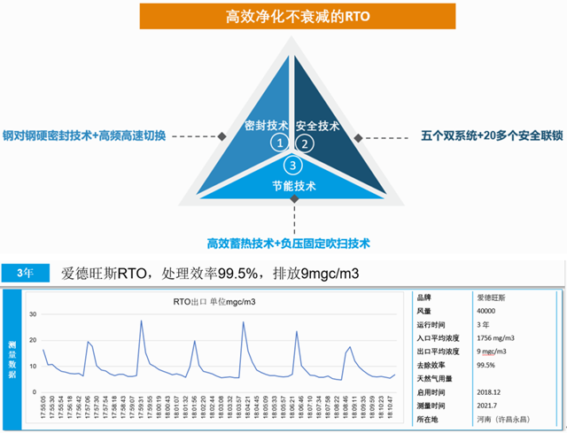 技術(shù)名稱 全自動減風(fēng)增濃系統(tǒng)及蓄熱式熱氧化(RTO)設(shè)備 技術(shù)依托單位 無錫愛德旺斯科技有限公司 工藝路線 通過VOCs濃度連續(xù)監(jiān)測,控制送風(fēng)-回風(fēng)-排風(fēng)量,優(yōu)化烘箱的空氣循環(huán)系統(tǒng),減少烘箱廢氣風(fēng)量、增加廢氣VOCs濃度后,將VOCs送入RTO進(jìn)行焚燒凈化后排放。氣流切換時少量未凈化廢氣通過控制閥流...