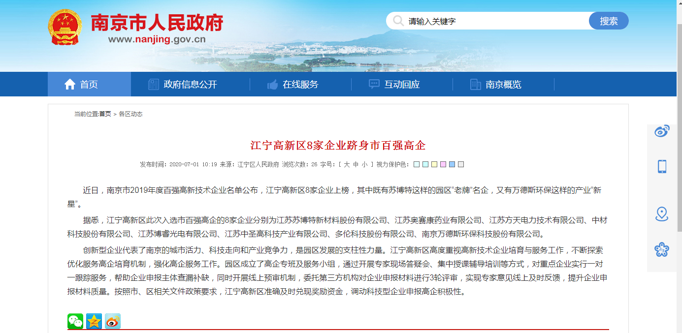 ——新的榮譽、新的“百強”、新的起航,萬德斯入選“江蘇省百強創(chuàng)新型企業(yè)”、“南京市百強高新技術企業(yè)”近日,江蘇省科技情報研究與江蘇省科技發(fā)展戰(zhàn)略研究院分別發(fā)布了“南京市2019年度百強高新技術企業(yè)”名單、“2019年江蘇省百強創(chuàng)新型企業(yè)”名單,南京萬德斯環(huán)保科技股份有限公司同時位列兩張榜單之中,成為...