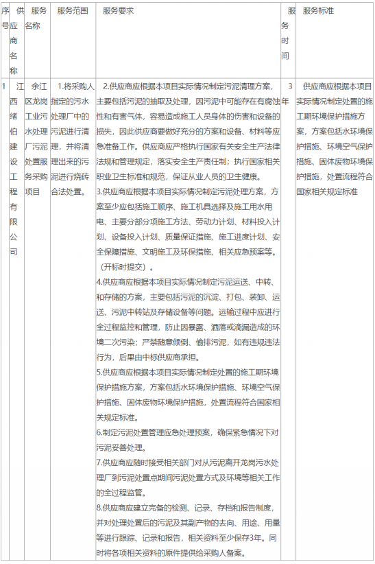 一、項目編號:JXHD-2021-YT011(招標(biāo)文件編號:JXHD-2021-011) 二、項目名稱:余江區(qū)龍崗工業(yè)污水處理廠污泥處置服務(wù)采購項目 三、中標(biāo)(成交)信息 供應(yīng)商名稱:江西緒伯建設(shè)工程有限公司 供應(yīng)商地址:江西省南昌市灣里區(qū)國家森林公園 中標(biāo)(成交)金額:109.5000000(萬元...