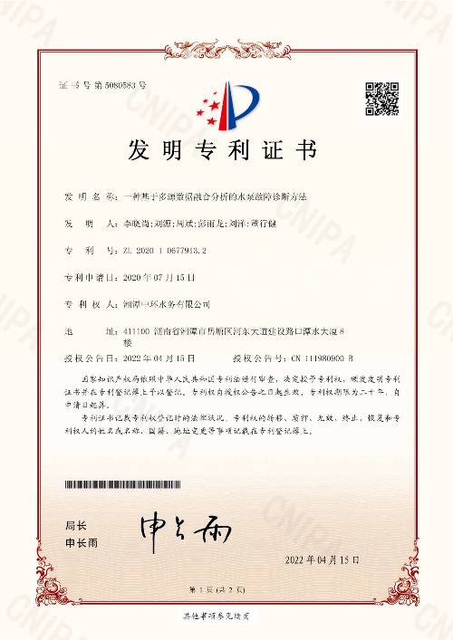 近日,依托中環(huán)水務(wù)牽頭承擔(dān)的2020年度集團(tuán)公司重大科技創(chuàng)新項(xiàng)目《智能水廠整體工藝方案》與《生態(tài)型村鎮(zhèn)污水處理技術(shù)工藝包》的技術(shù)成果,“一種基于多源數(shù)據(jù)融合分析的水泵故障診斷方法”和 “一種蠕蟲床化糞池”兩項(xiàng)發(fā)明專利獲得國家知識(shí)產(chǎn)權(quán)局授權(quán)。 &ldqu...
